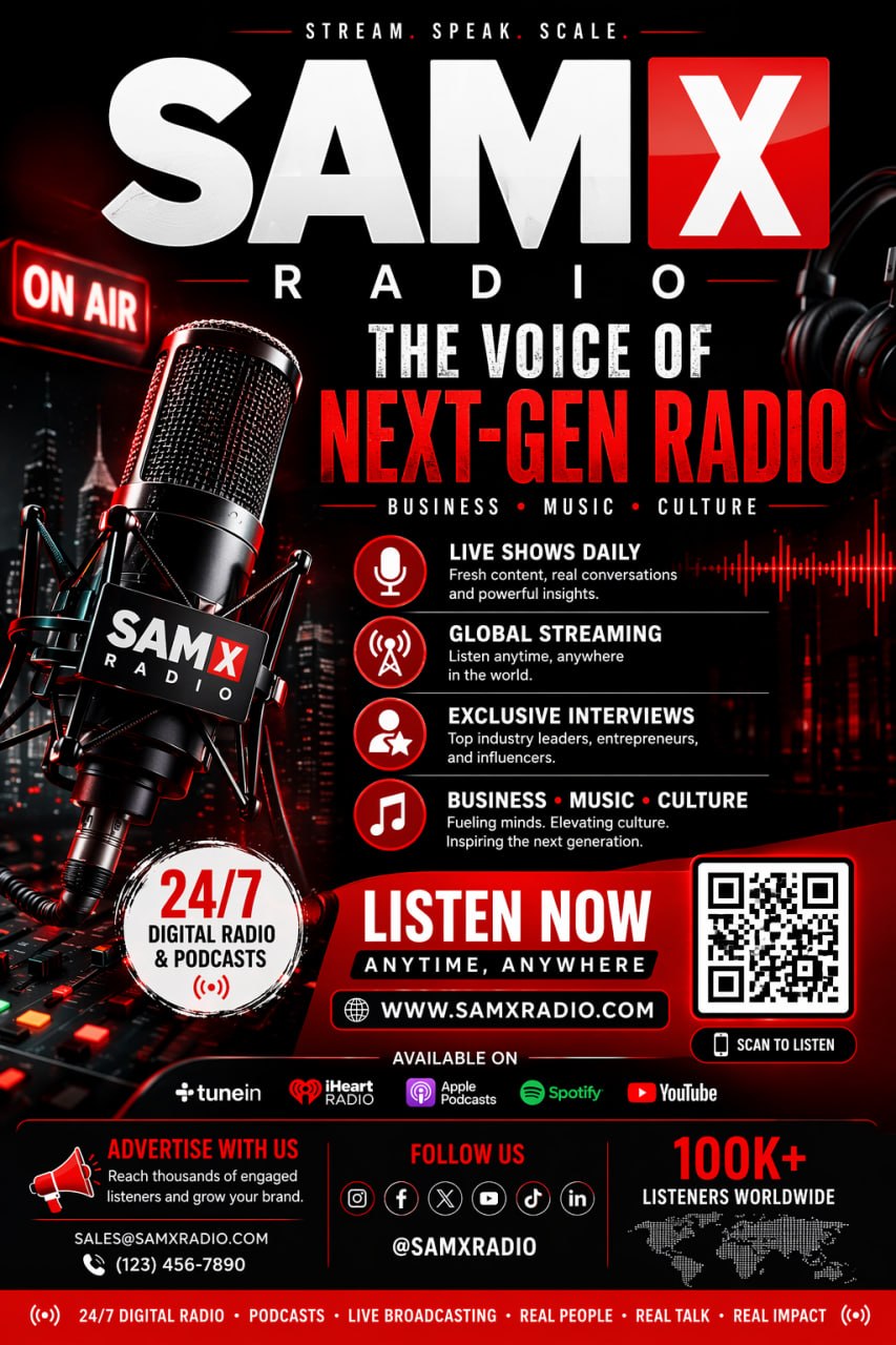 SAMX Radio isn’t just another radio station — it’s a digital media movement. Built for the urban audience, creatives, entrepreneurs, and global listeners who demand more than mainstream noise.